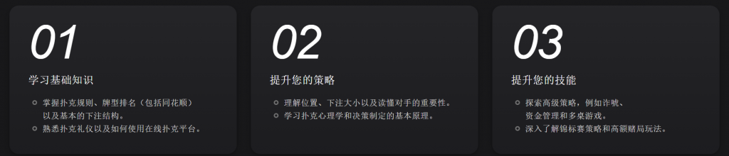 学习基础知识 · 掌握制胜思维 。每一位扑克高手都曾从新手起步。